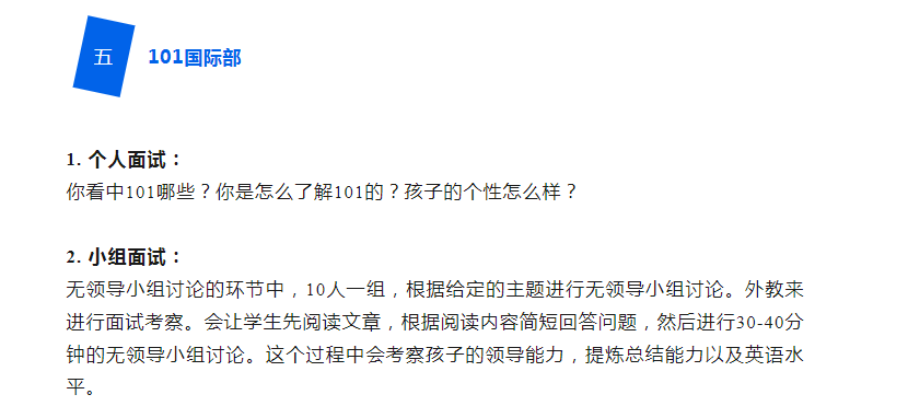 国际部的面试形式多种多样。除了针对于个人的了解外,还有很多其他形式。包含