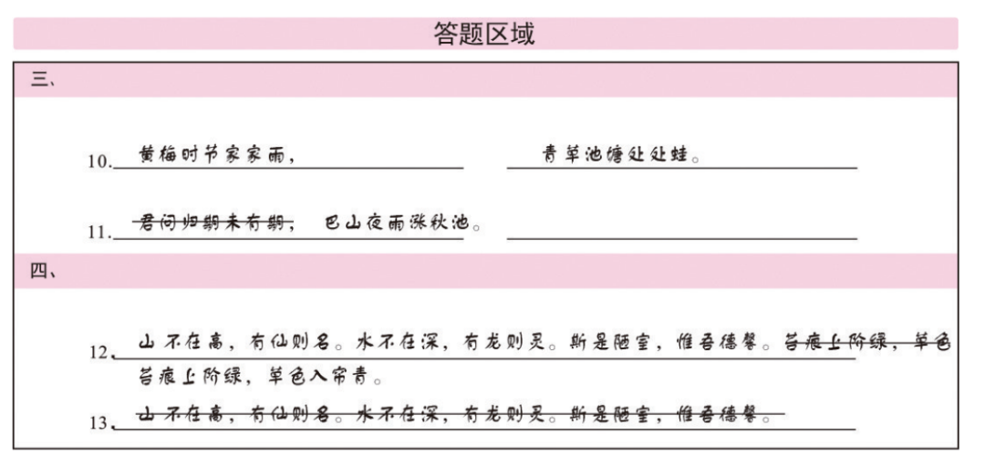 6.主观题用黑色字迹的签字笔作答(切勿使用其它颜色的签字笔);答题字迹不可压在黑色框线上,更不可写在框线外;修改时须用黑色签字笔在原作答上逐字逐行画一道线删除掉,然后在其后方或下方重新作答。修改时不得使用涂改液或胶带纸,否则作答无效。如下图所示: