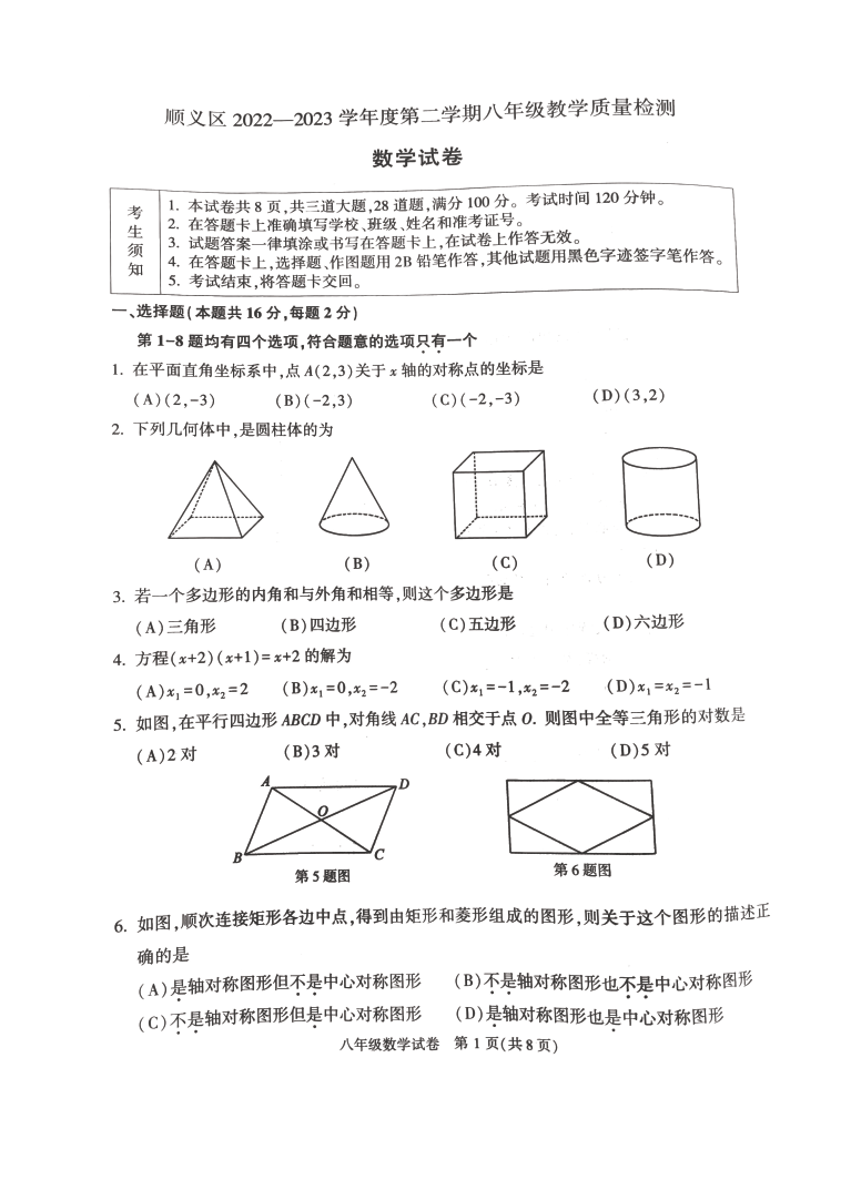 2023北京各区初二期末考已陆续开始,北达中考网为大家整理了 试题及答案,分享给大家。