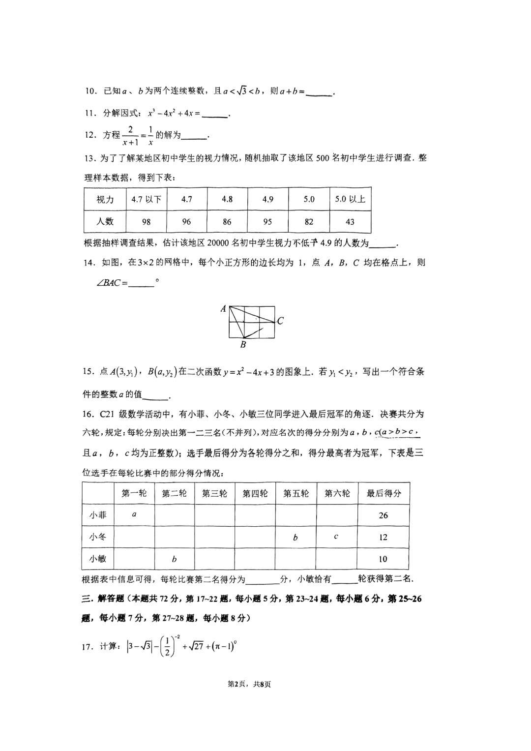 2023-2024学年北京清华附中初三(上)数学开学测试题已出,北达中考网为大家整理了内容详情,赶紧下载做起来吧。