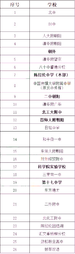 北京朝阳区参与招生的高中学校
