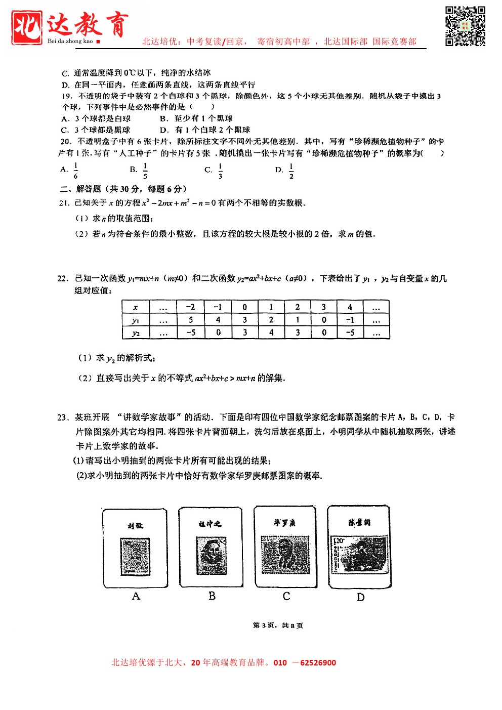 北达中考网整理分享了2023~2024学年北京市第十五中学初三下开学考数学试题,需要的同学赶紧下载练习吧。
