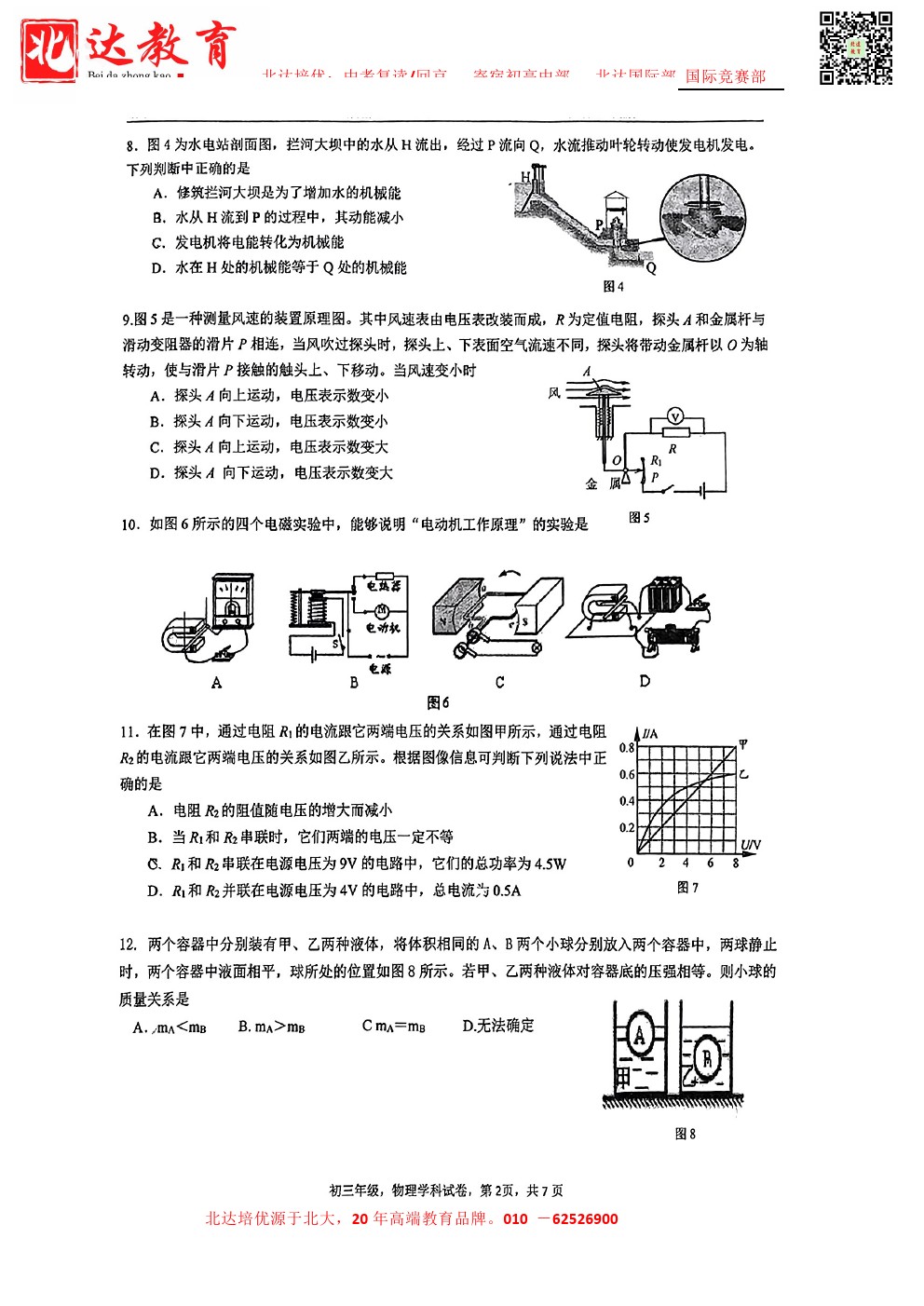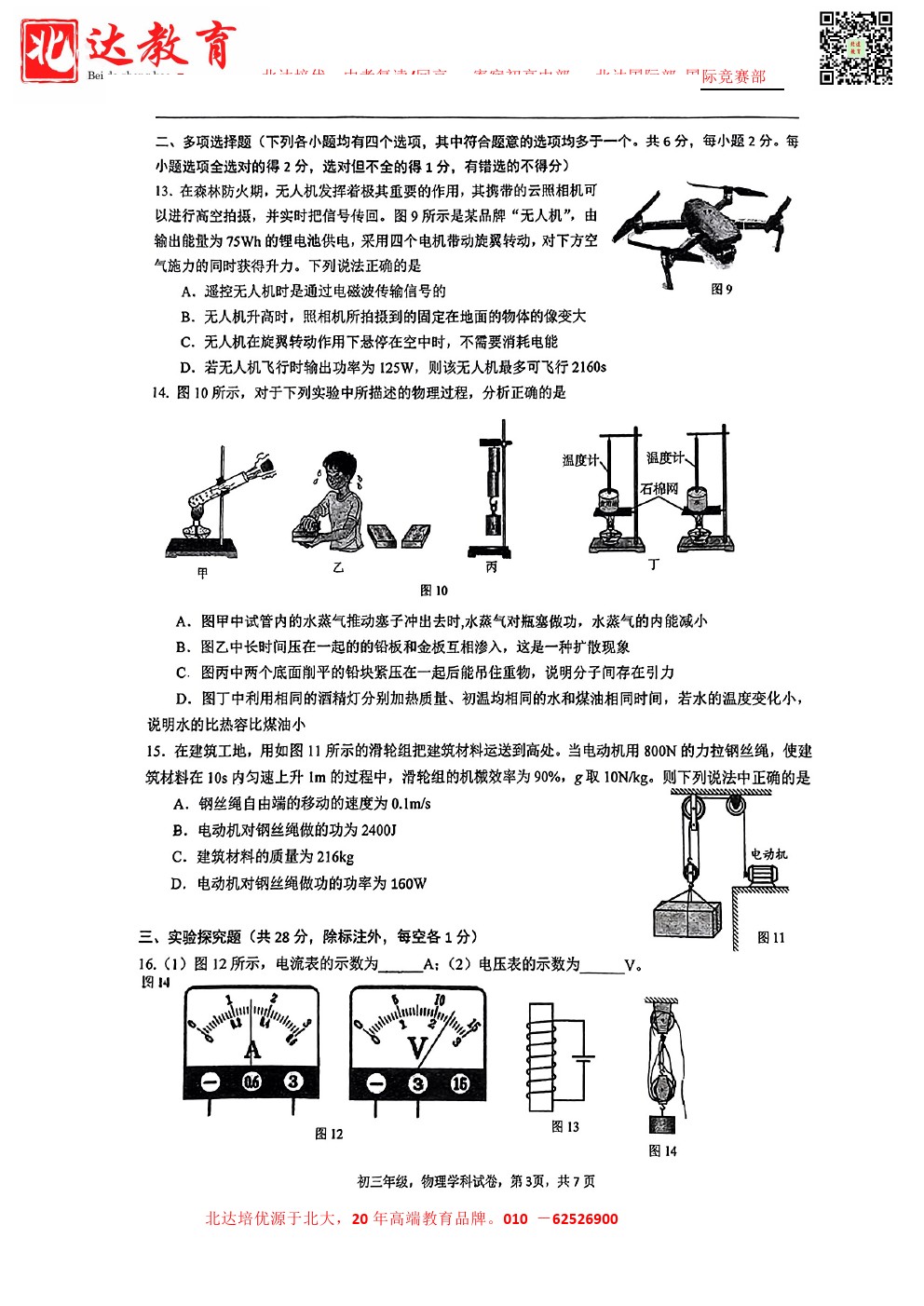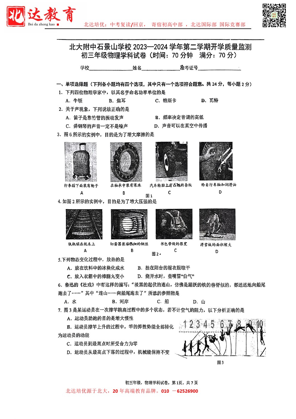 北达中考网整理分享了2023~2024学年北京北大附中石景山校初三(下)开学考物理试题,需要的同学赶紧下载练习吧。