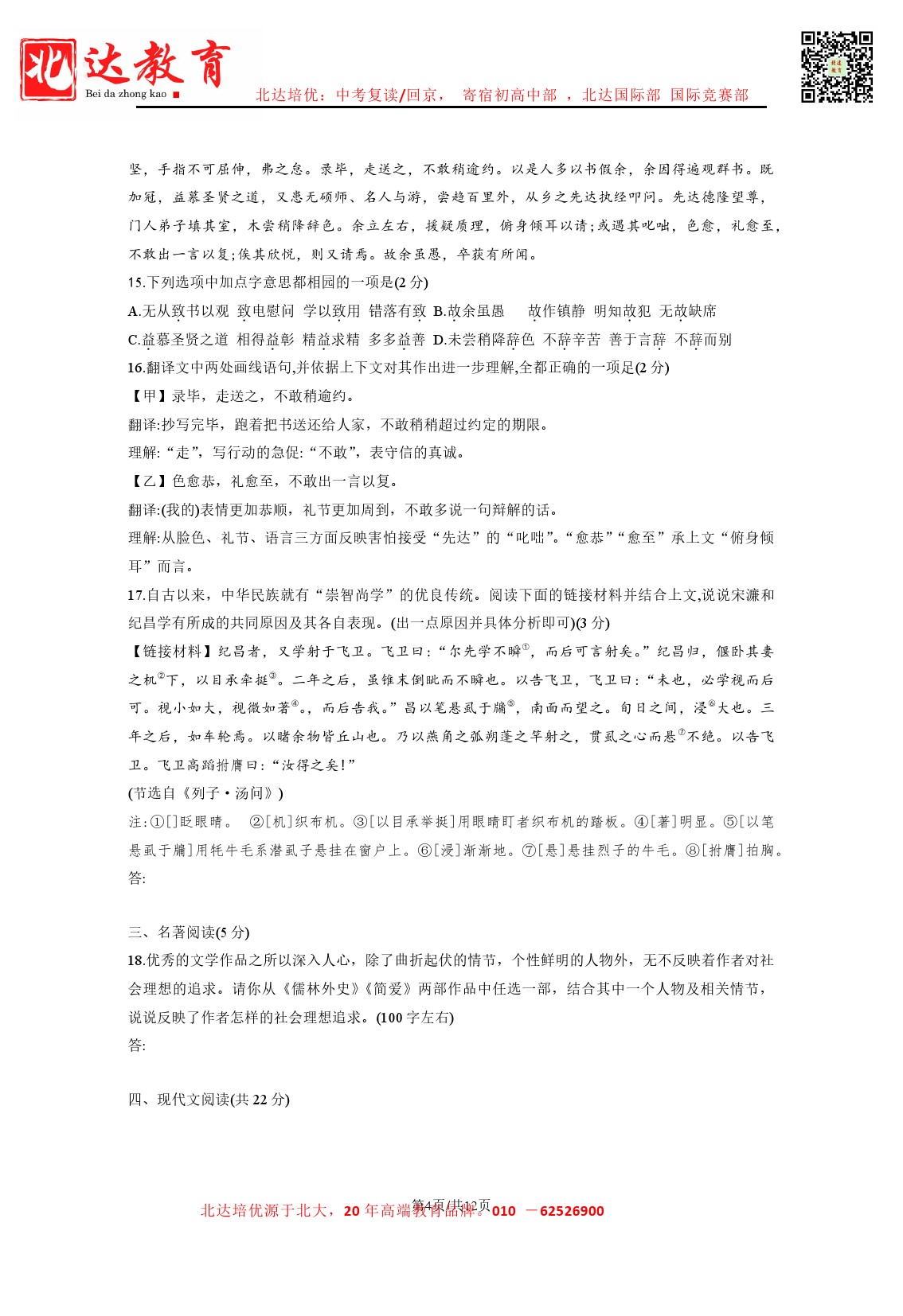 北达中考网整理分享了2023-2024学年北京人大附中初三(下)开学考语文试题及答案,需要的同学赶紧下载练习吧。