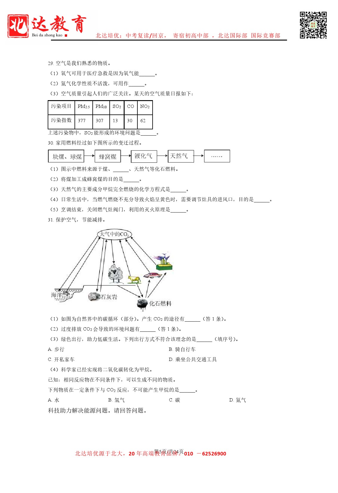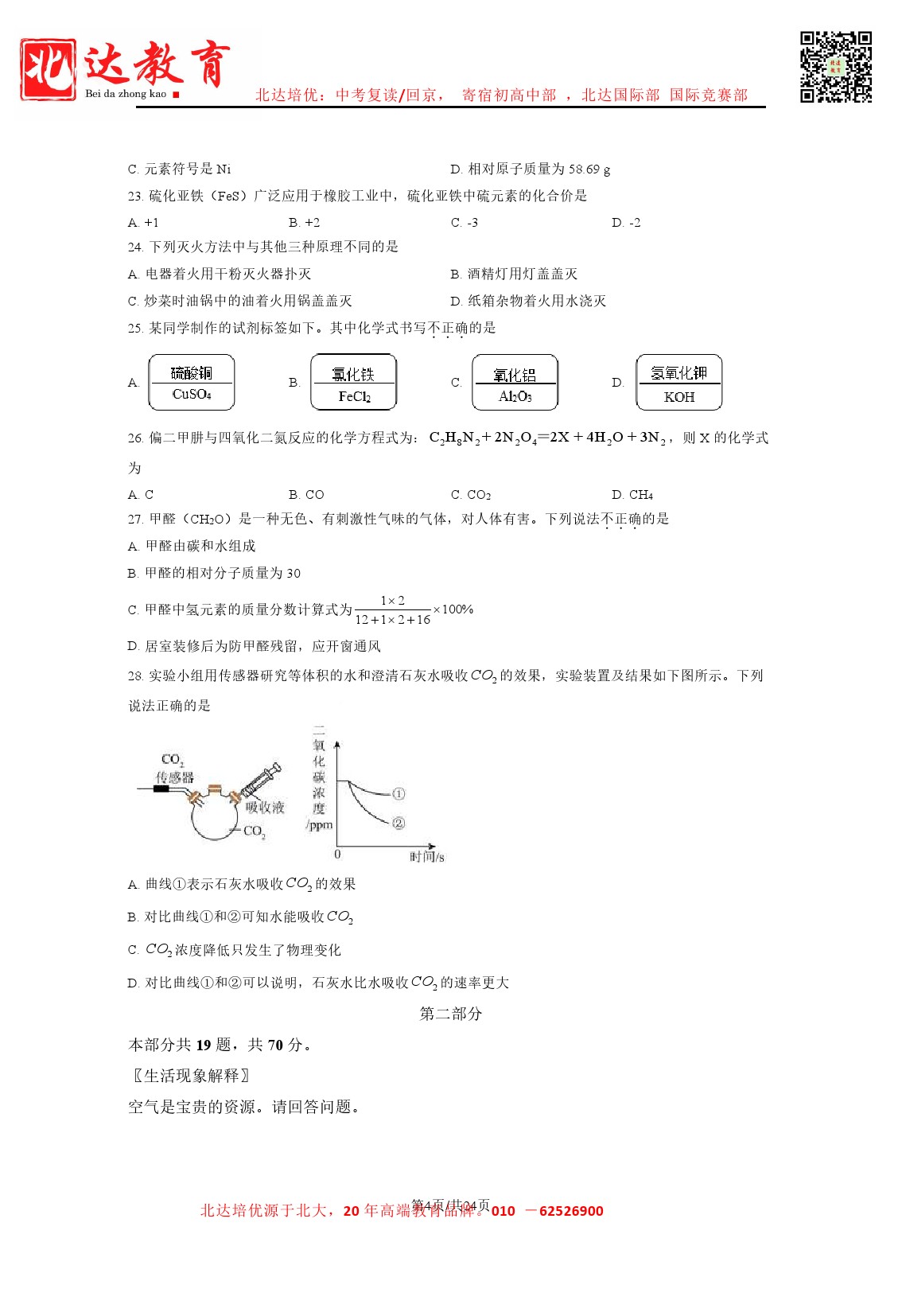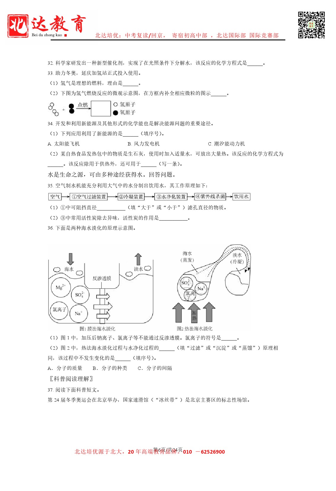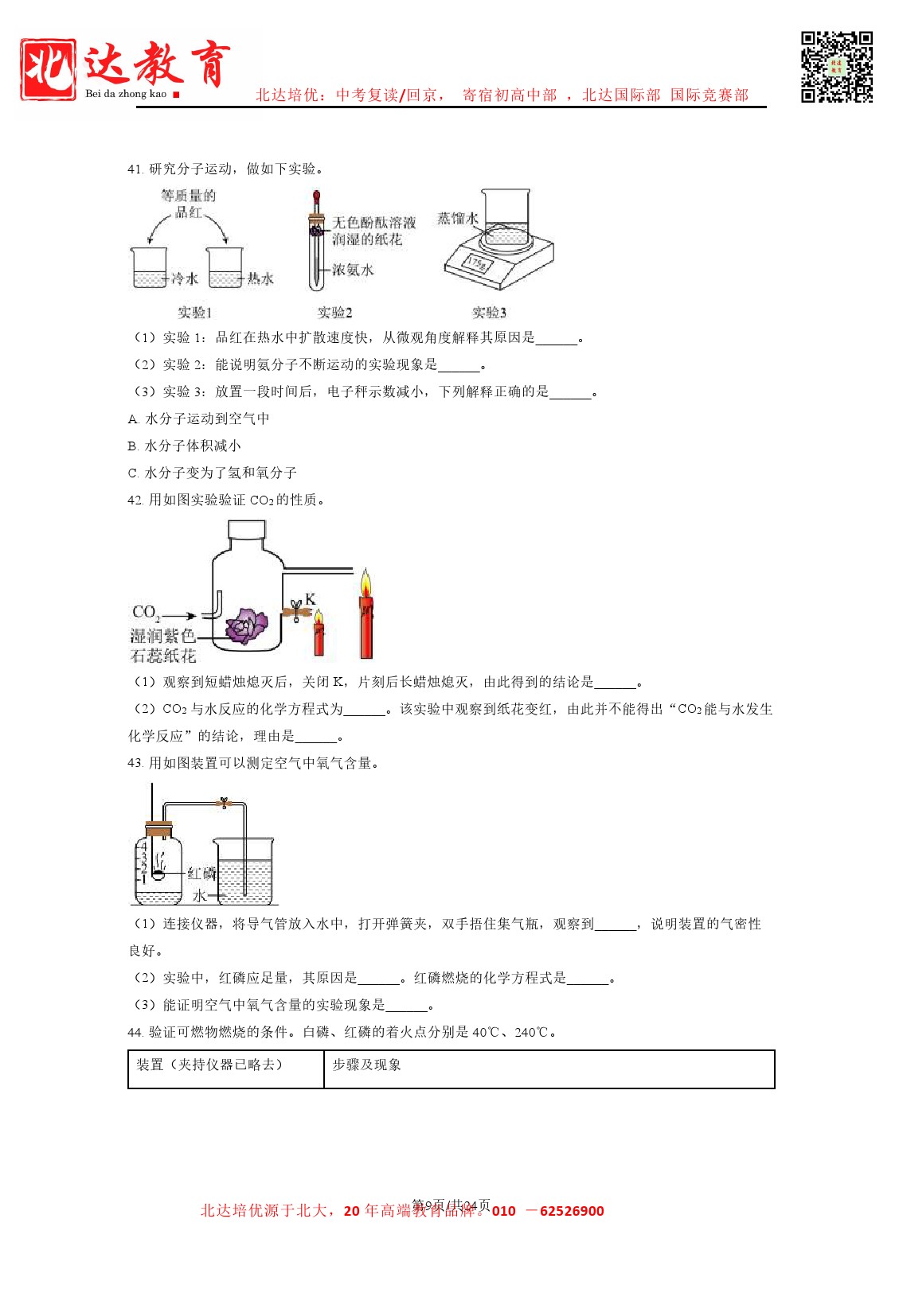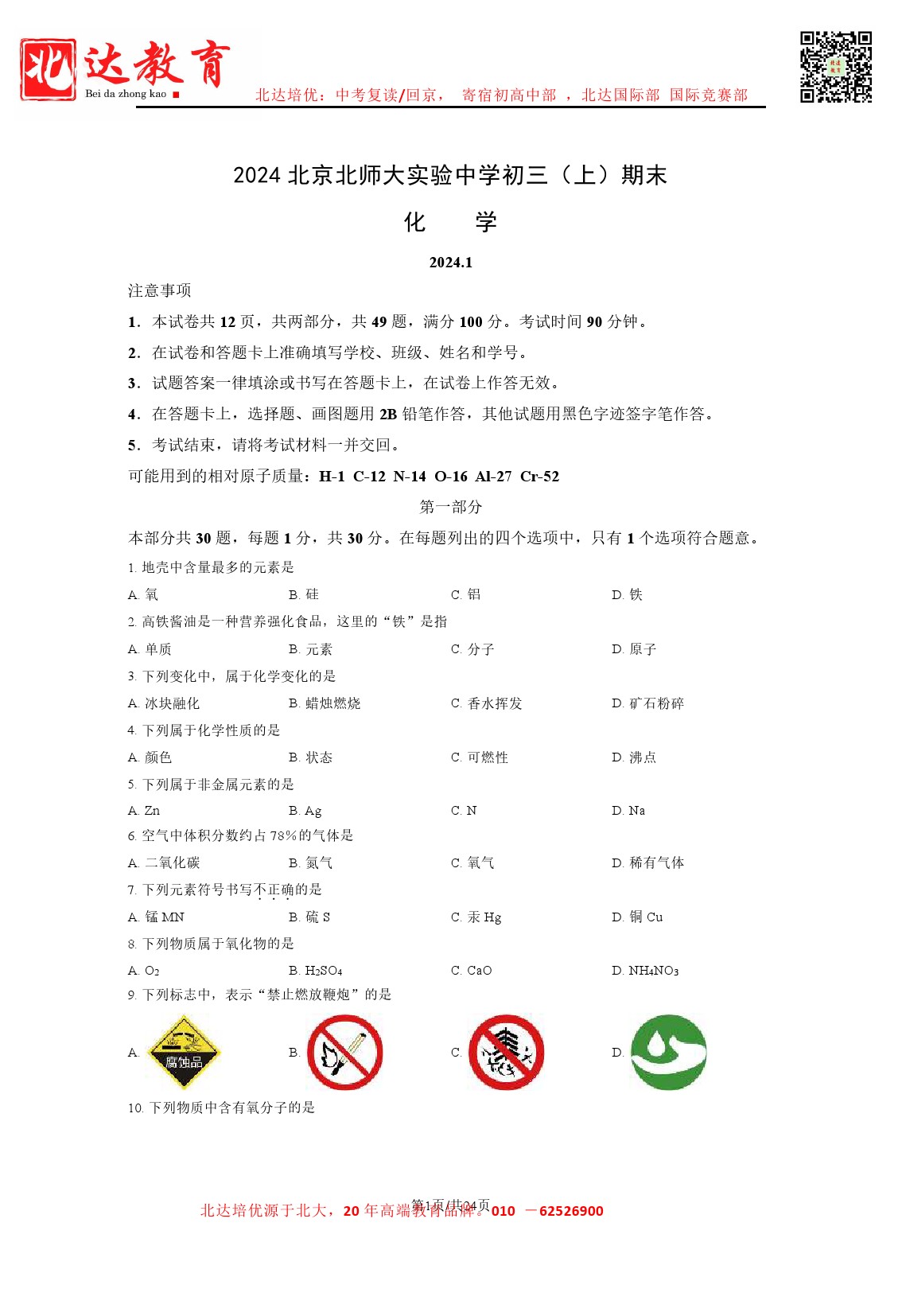 北达中考网整理分享了2023-2024学年北师大实验中学初三开学考化学试题及答案,需要的同学赶紧下载练习吧。