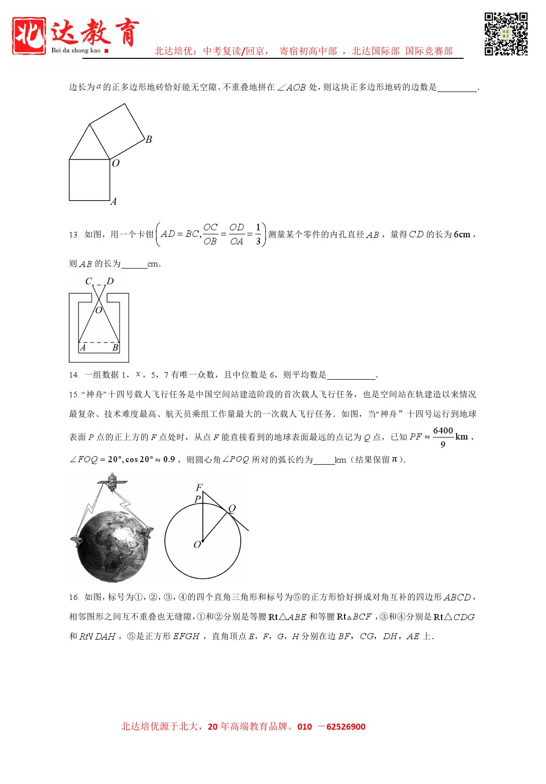北达中考网整理分享了2024北京十一晋元中学初三下开学考数学试题含答案,需要的同学赶紧下载练习吧。