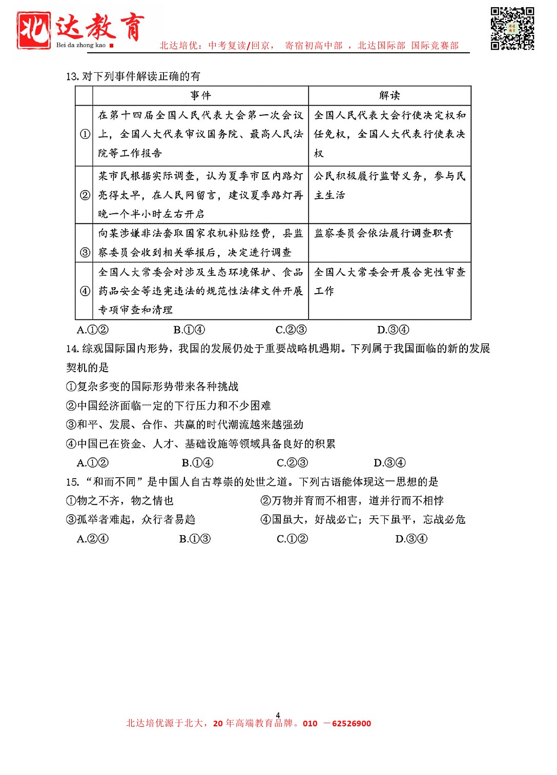 北达中考网最新整理了2024北京四中初三(下)3月月考道法试题,需要的同学赶紧下载练习吧! 北京北达全日制学校,中高考复读,外地回京中高考 电话咨询:400-6168182 010-62526900 答案下载:http://365.bei…