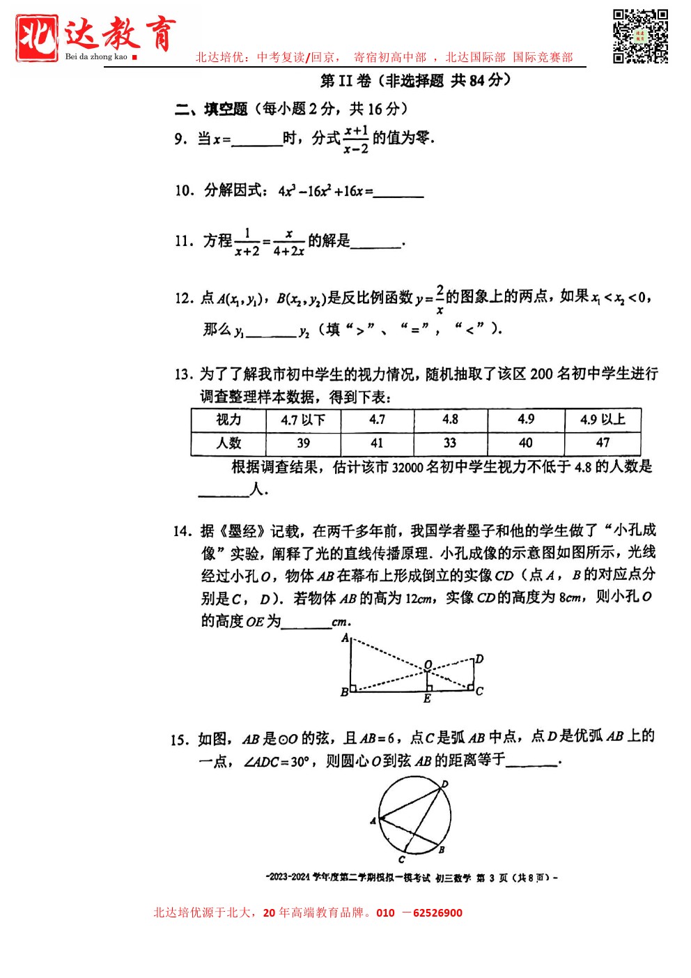 2024年北京二中初三一模数学考试已结束,北京北达教研组整理到了相关试卷资料,有需要的同学赶紧下载练习起来吧。