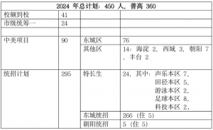 普通高中:东城2024年290人(特长24人),今年较2023增加13人统招计划。