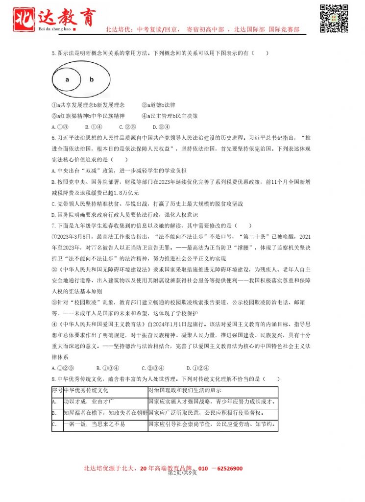 北达中考教研组收集整理了2024北京一六一中初三二模道德与法治试题及答案,快来看看你答的如何吧。
