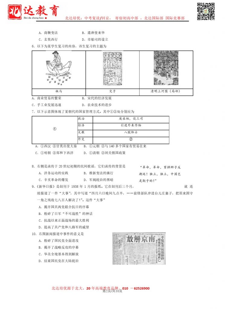 北达中考教研组收集整理了北京门头沟区2024初三二模历史上试卷及答案,快来看看你答的如何吧。