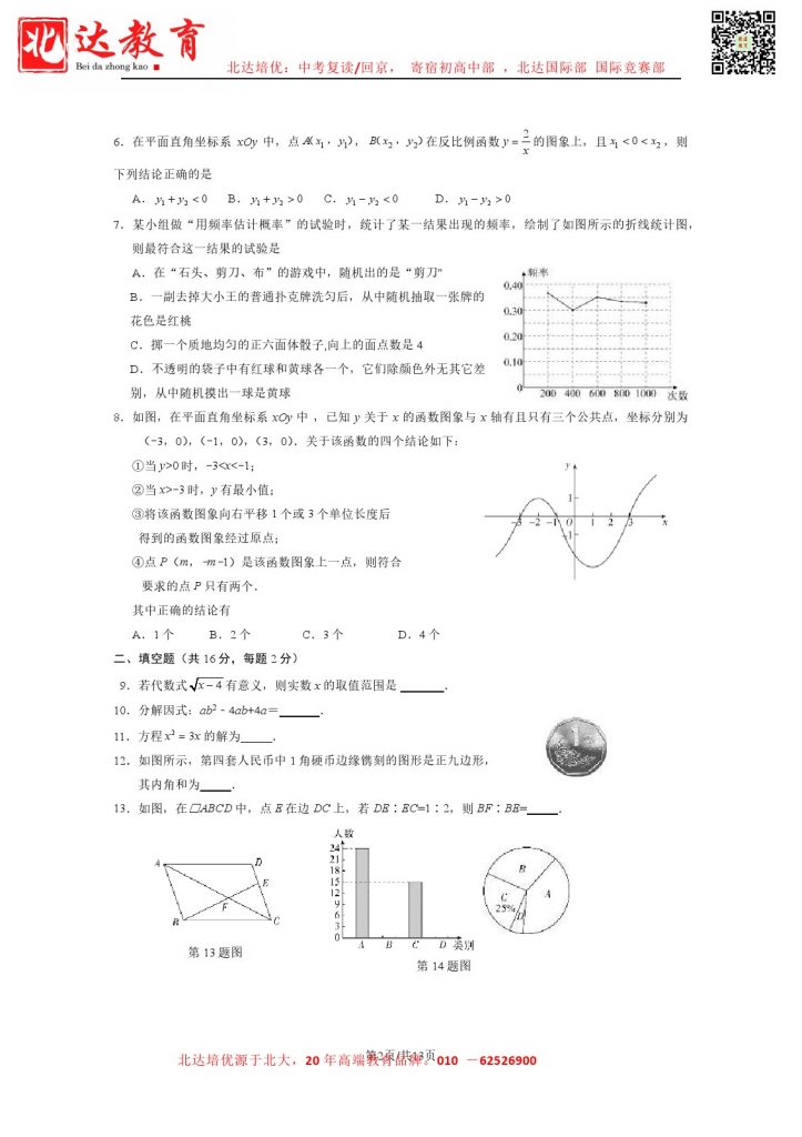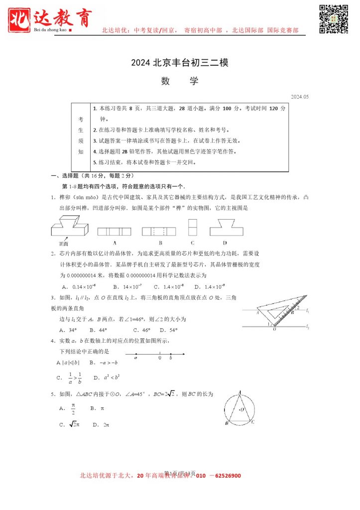 2024北京丰台区初三二模数学试题及答案