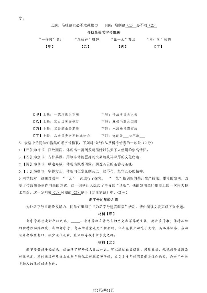 首页 初一试题 2024北京大兴区初一(下)期末语文试卷及答案