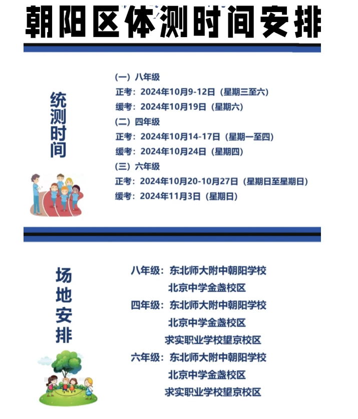 北京朝阳区2024八年级体测时间安排出炉,以下是小编为大家整理的内容详情,一起来看: