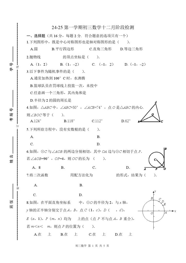 北京2024-2025学年初三12月月考正在陆续进行中,为方便大家对答案、下载练习等小编给大家搜集了2024北京三十五中初三12月月考数学试题,需要的小伙伴赶紧下载练习起来吧: