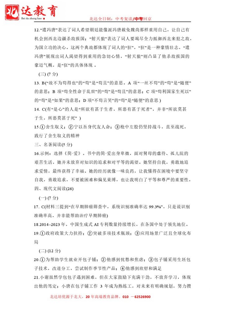 北达教研组收集整理了2025北京一零一中初三3月月考语文试卷及答案,分享给大家,快来下载复习吧。 北京北达全日制学校,中高考复读,外地回京中高考 电话咨询:400-6168182 …