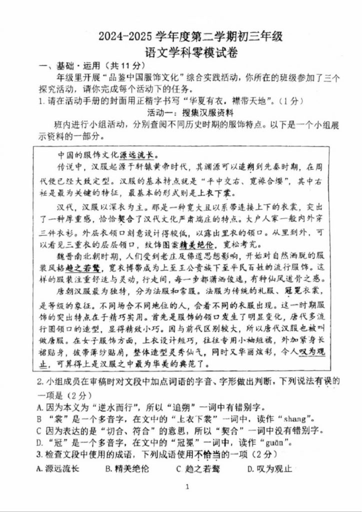北达教研组收集整理了北京育才学校2025初三零模语文试题,分享给大家,快来下载复习吧。