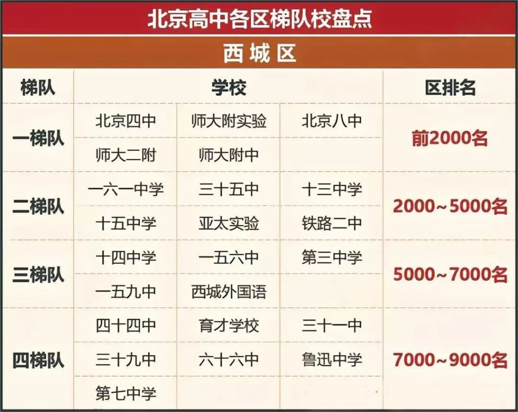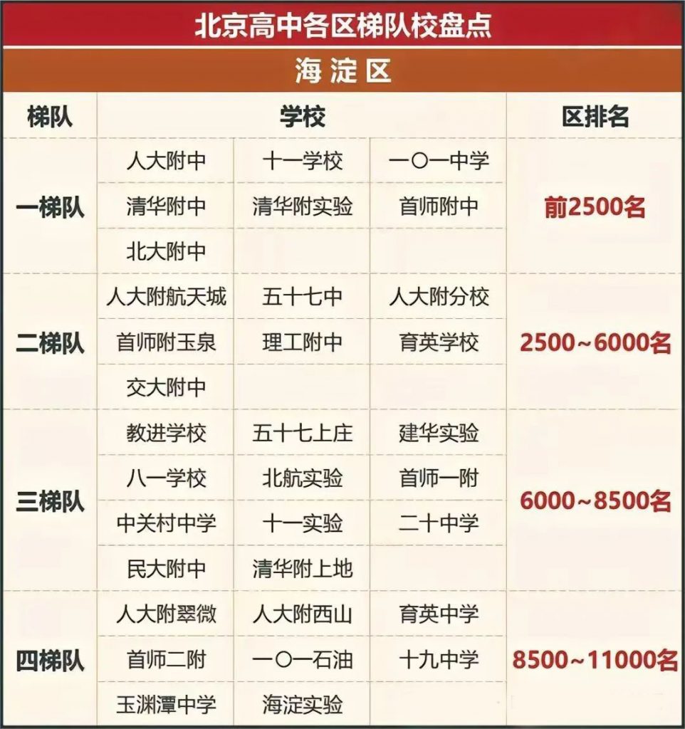 一模临近,最新北京2025高中梯队校排行榜出炉!你的目标校在第几梯队?接下来跟随北达中考复读学校一起来看看吧: