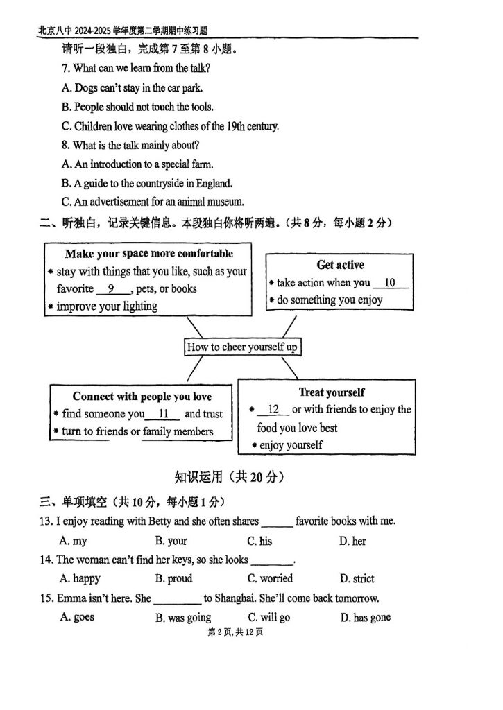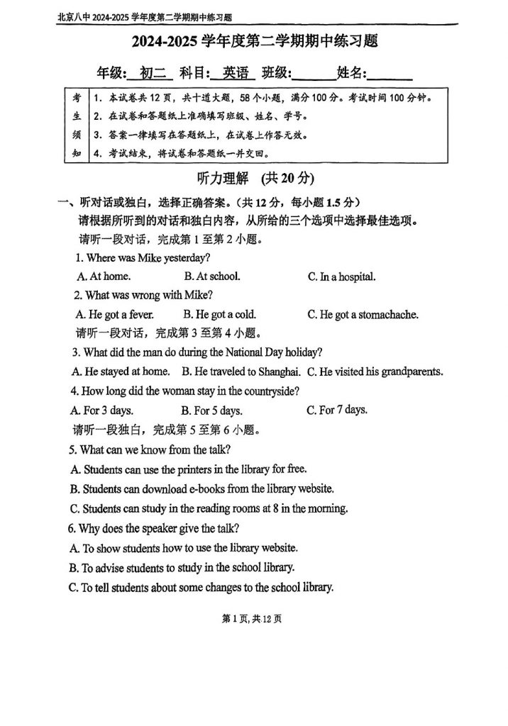 2025北京各区初二期中考已陆续开始,北达教研组整理了2025北京八中初二(下)期中英语试题及答案,分享给大家。