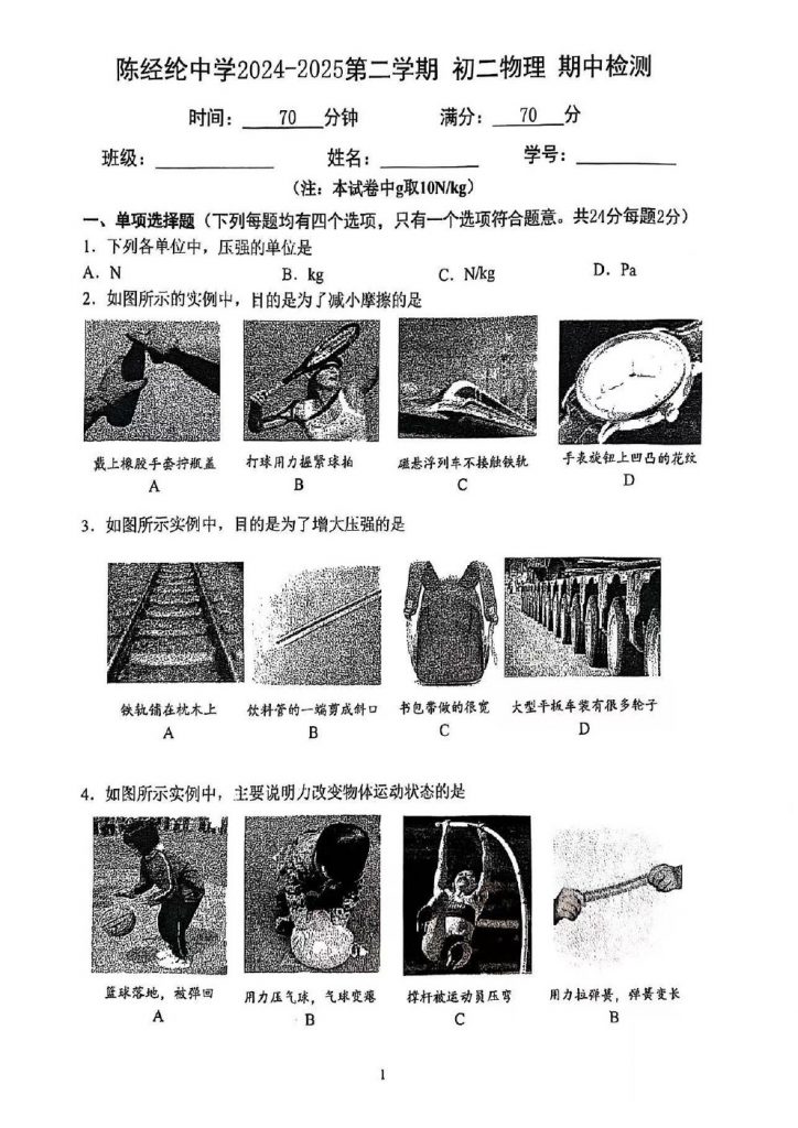 2025北京各区初二期中考已陆续开始,北达教研组整理了2025北京陈经纶中学初二(下)期中物理试题,分享给大家。