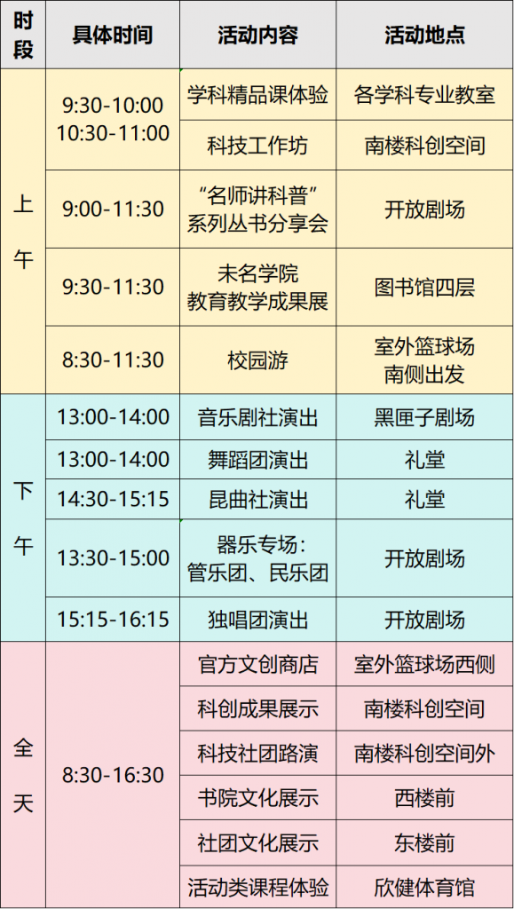 ● 开放日当天凭预约成功短信入校。受校园及活动容纳量限制,如您本次未能预约成功,敬请谅解。期待未来相遇!
