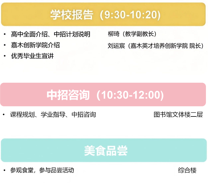 6.相应活动结束后请勿在教室內长时间逗留,以免造成拥挤。来访期间,请全程配合校内老师、志愿者、安保人员的组织协调。