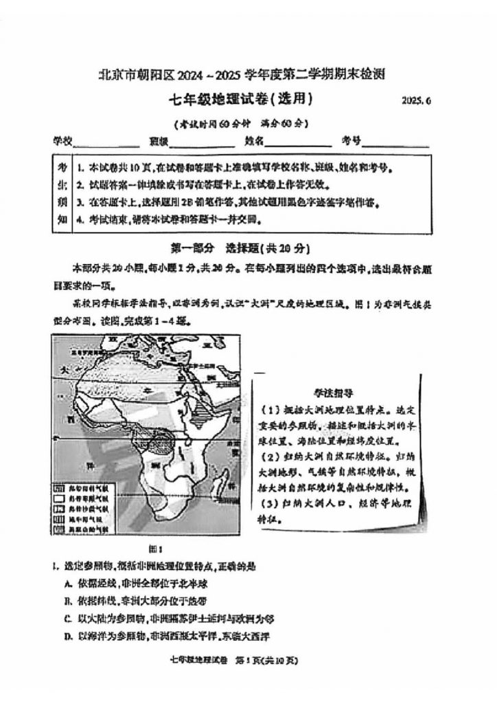 2025年北京各区初一(下)期末考已陆续开始进行,北达教研组整理了2025朝阳初一(下)期末地理试题及答案,分享给大家。