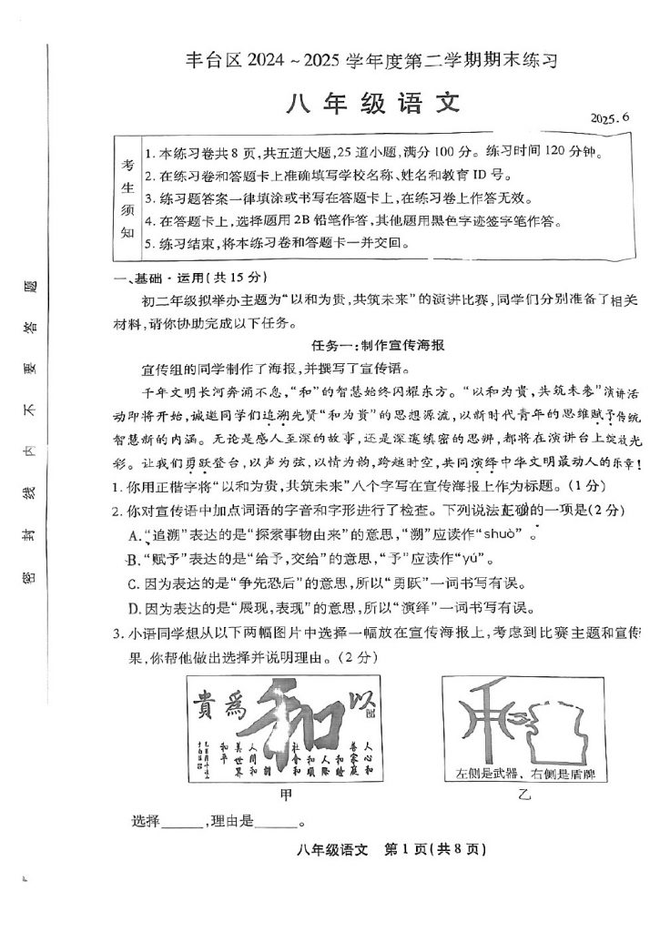 2025年北京各区初二(下)期末考已陆续开始进行,北达教研组整理了2025北京丰台区初二(下)期末语文试题,分享给大家。