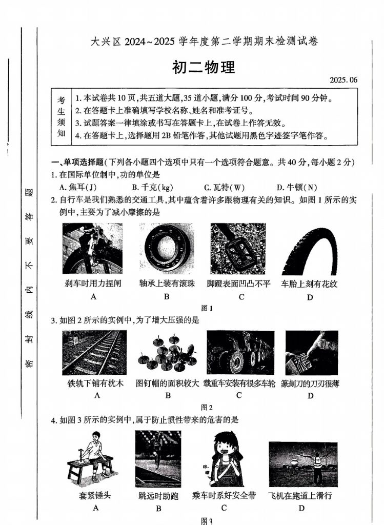 2025年北京各区初二(下)期末考已陆续开始进行,北达教研组整理了2025大兴区初二(下)期末物理试题及答案,分享给大家。