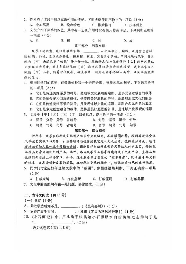 2025年北京各区初二(下)期末考已陆续开始进行,北达教研组整理了2025北京昌平区初二(下)期末语文试题,分享给大家。