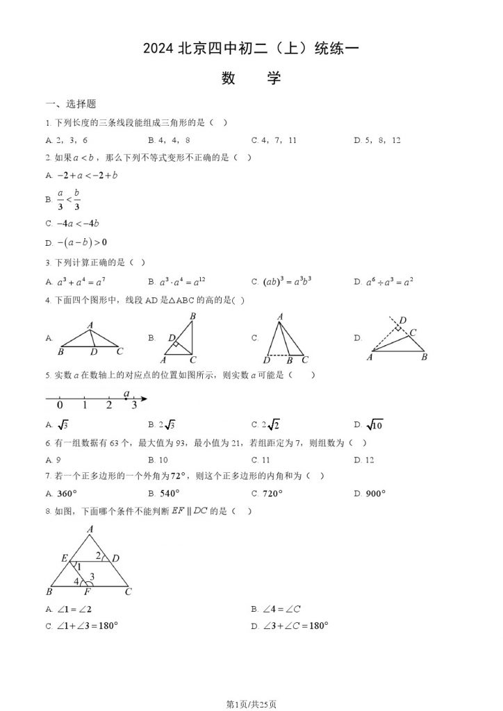 北达教研组整理了2024北京四中初二(上)开学考数学试题及答案,分享给大家,同学们做题练习后可结合参考答案进行估分。 2025北达中考复读全日制,应届生全日制,外地回京全日制采取择…