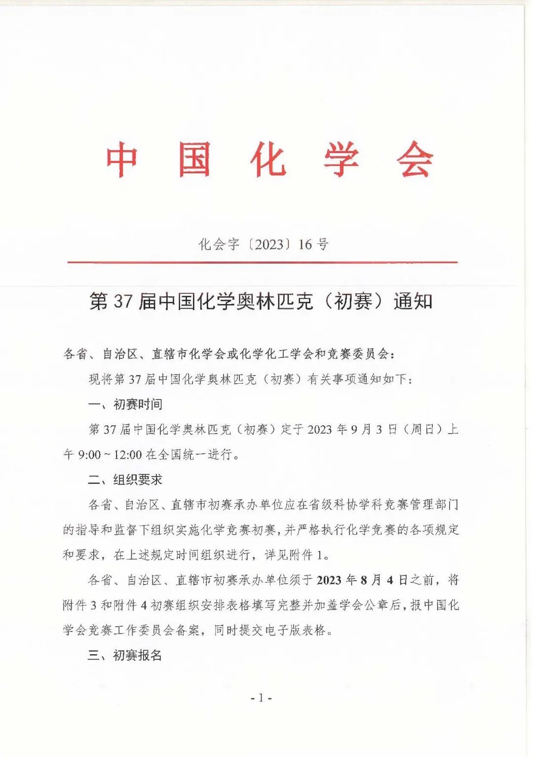 2023年第37届中国化学奥林匹克(初赛)9月3日开考 //m.cfjuqp.com/zhongkao/82844.html Fri, 28 Jul 2023 02:09:51 +0000 //m.cfjuqp.com/zhongkao/?p=82844 2023年第37届中国化学奥林匹克(初赛)9月3日开考,以下是北达中考网整理的内容详情。