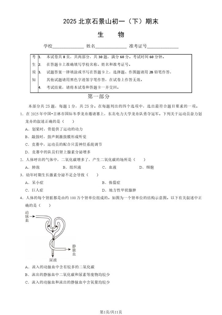 2025北京石景山初一(下)期末生物试题及答案 //m.cfjuqp.com/zhongkao/91505.html Fri, 01 Aug 2025 06:59:32 +0000 //m.cfjuqp.com/zhongkao/?p=91505 2025年北京各区初一(下)期末考已陆续开始进行,北达教研组整理了2025北京石景山初一(下)期末生物试题及答案,分享给大家。